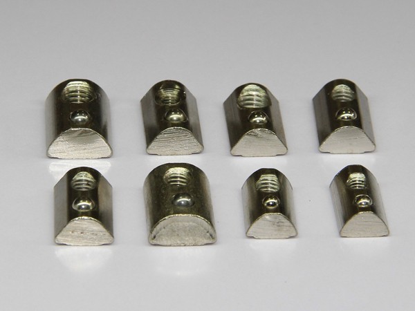 用途:彈性螺母塊能被直接塞進鋁型材槽坑中的任意裝配點,它背部的彈簧鋼珠能固定它的位置,使安裝十分簡單且可靠,它是型材連接中使用比較多的配件之一。